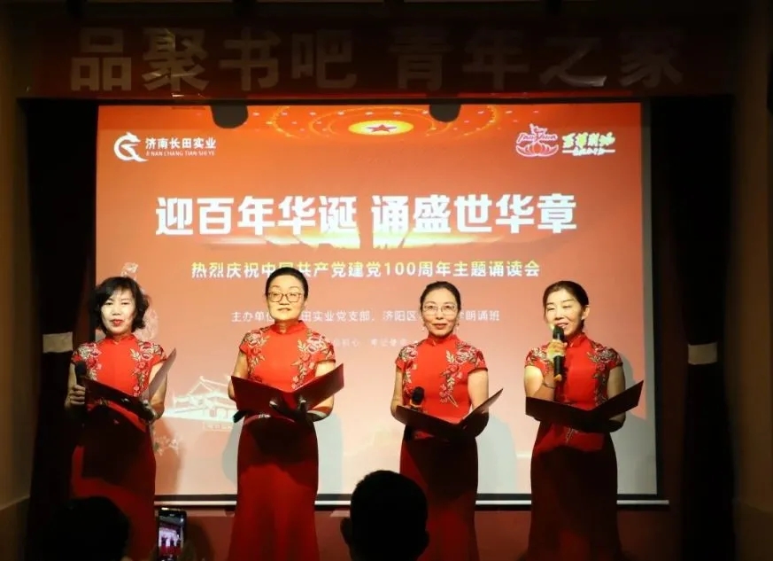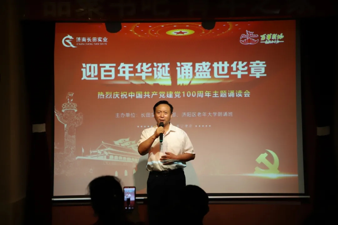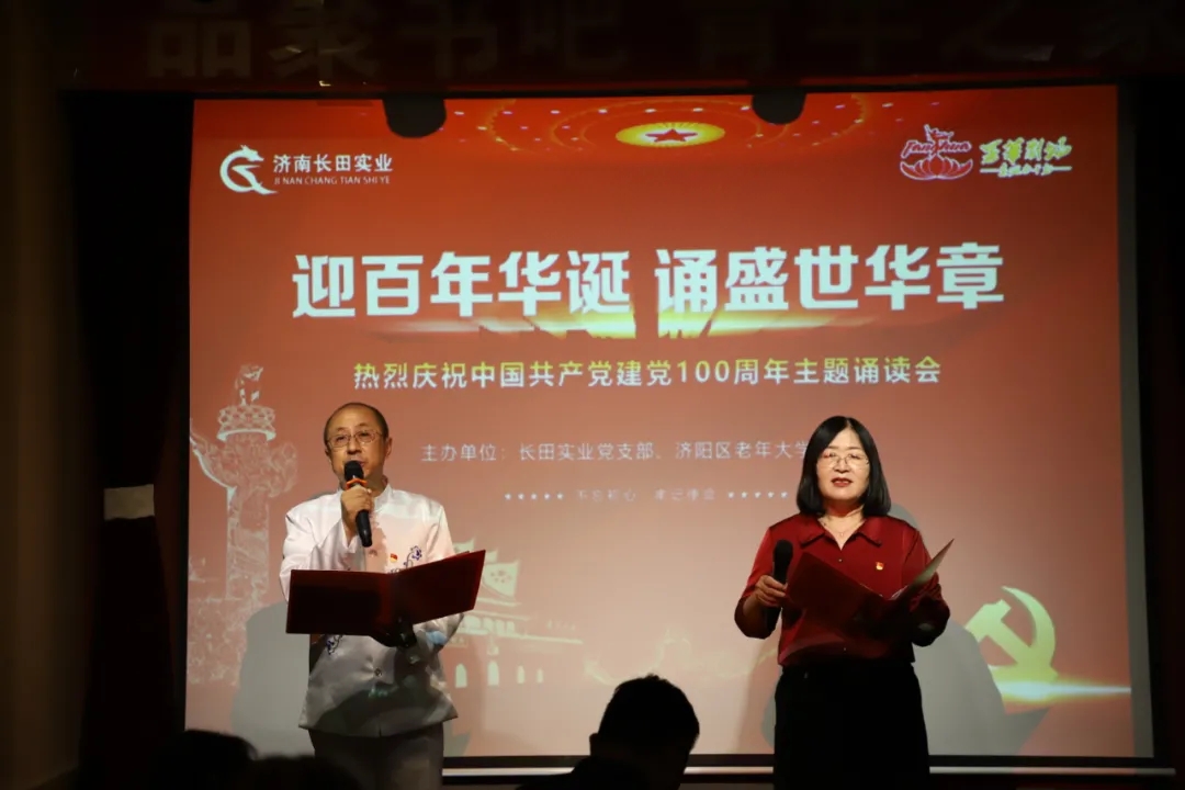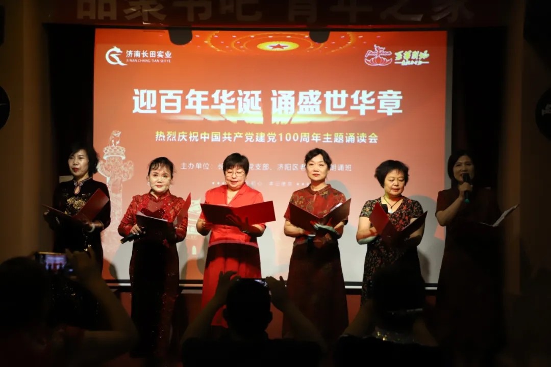 6月30日,為慶祝中國共產(chǎn)黨成立100周年,由濟(jì)陽區(qū)老年大學(xué)、長田實(shí)業(yè)主辦的詩歌朗誦分享會(huì)活動(dòng),在華百廣場四樓的品聚書吧舉行。濟(jì)陽區(qū)委老干部局二級(jí)調(diào)研員張連慶、濟(jì)陽區(qū)老年大學(xué)校長霍思剛、濟(jì)陽區(qū)老年大學(xué)朗誦班班長張凱、長田實(shí)業(yè)常務(wù)副總張玲出席活動(dòng)。