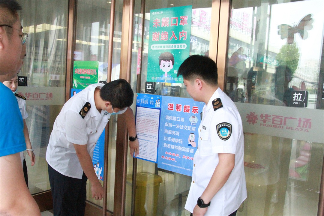 華百?gòu)V場(chǎng)從疫情防控制度、商場(chǎng)內(nèi)環(huán)境衛(wèi)生、個(gè)人衛(wèi)生防護(hù)、冷鏈?zhǔn)称芬?、限流限距措施、?yīng)急處理措施等方面貫徹實(shí)施常態(tài)化疫情防控措施,并每日向商務(wù)信息中心提報(bào)本商場(chǎng)內(nèi)工作人員的疫苗接種情況,共筑安全屏障。