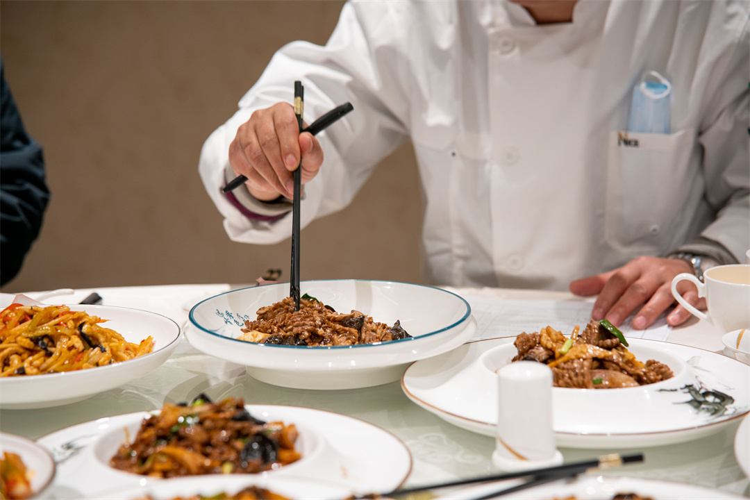 菜品完成后,專家組各抒己見,周燕總經理與陳兆??偨浝矸謩e從菜品的加工、精細度、出品、口味等方面進行點評,并對大家的精神風貌及工作態(tài)度給予高度認可,贊揚了長田餐飲人的職業(yè)素養(yǎng)。