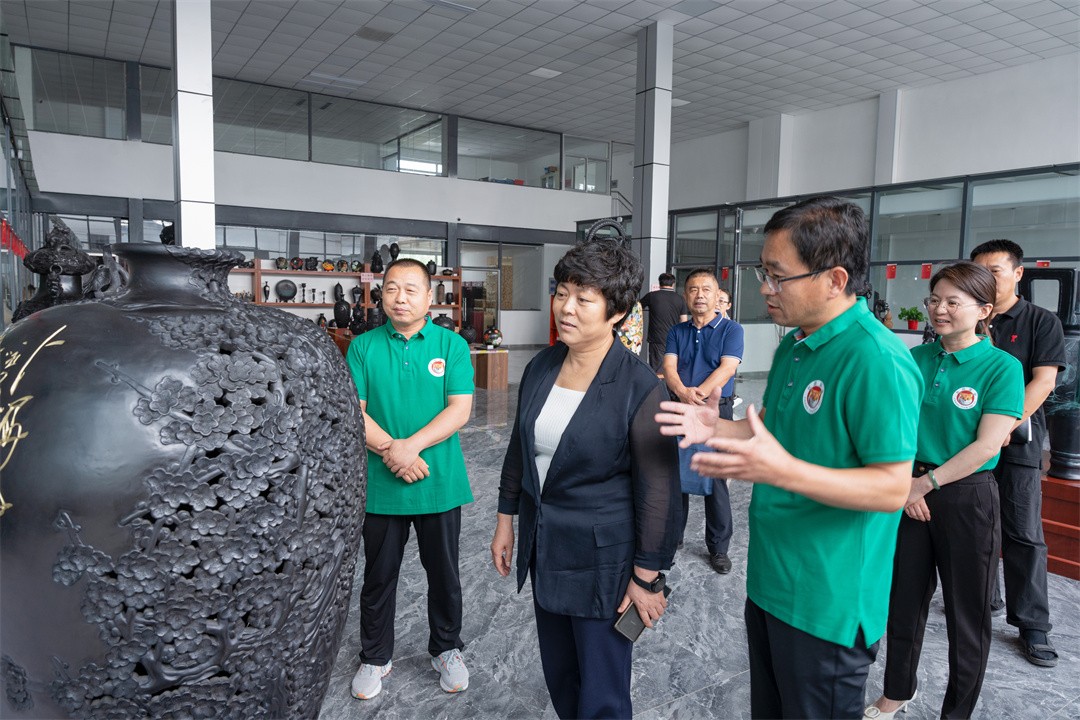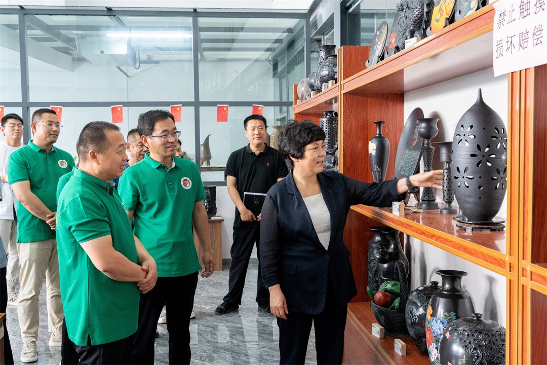 秦書記在視察龍格黑陶的過程中,對龍格黑陶的作品贊賞不已,感嘆黑陶工藝之高超,從10厘米高的筆筒到2.4米高的作品,從最容易的雕刻到最難的掐絲,從單色到多彩……浸潤著技藝傳承人的執(zhí)著追求。黑陶文化是黃河流域文化,以其深厚的歷史底蘊(yùn)和豐富的人文內(nèi)涵,構(gòu)成漢文化的淵源龍脈。黑陶是非物質(zhì)文化遺產(chǎn),是濟(jì)陽靚麗的文化名片,龍格黑陶得以將這一偉大、豐厚、輝煌的非物質(zhì)文化遺產(chǎn)延續(xù)傳承,讓其散發(fā)出更閃耀、更璀璨的光芒。她希望“龍格黑陶要將文化藝術(shù)與市場需求相結(jié)合,既能傳承發(fā)揚(yáng),也要有市場認(rèn)可?!?/span>