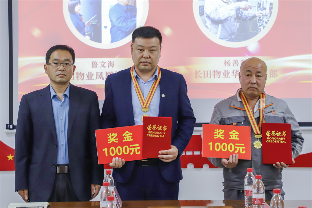 由于魯文海師傅正在疫情隔離點(diǎn)進(jìn)行抗疫工作,未能參加本次活動(dòng),由長田物業(yè)鳳凰城項(xiàng)目部經(jīng)理孫濤代為領(lǐng)獎(jiǎng)。