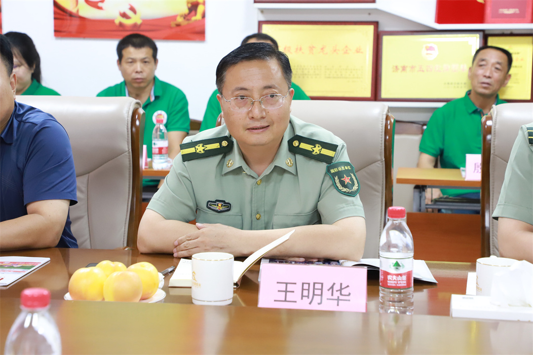 主如學(xué)政委在講話中充分肯定了長(zhǎng)田實(shí)業(yè)在軍地共建方面做出的成績(jī),贊揚(yáng)了董事長(zhǎng)張勇“退役不褪志、退伍不褪色”的精神。他講到,長(zhǎng)田實(shí)業(yè)帶著感情、帶著責(zé)任,持續(xù)落實(shí)開(kāi)展雙擁工作,優(yōu)先吸納退役軍人就業(yè),改善退役軍人工作環(huán)境,召開(kāi)退役軍人座談會(huì),組織開(kāi)展走訪慰問(wèn)老兵,為退役軍人解難題,為進(jìn)一步密切軍政軍民關(guān)系,為實(shí)現(xiàn)強(qiáng)軍夢(mèng)、強(qiáng)國(guó)夢(mèng)凝聚民企力量。他強(qiáng)調(diào),7月28日,就深入實(shí)施新時(shí)代人才強(qiáng)軍戰(zhàn)略,中共中央政治局進(jìn)行第四十一次集體學(xué)習(xí)。習(xí)近平總書(shū)記發(fā)表了重要講話,“未來(lái)五年,我軍建設(shè)的中心任務(wù)就是,實(shí)現(xiàn)建軍一百年的奮斗目標(biāo),不斷開(kāi)創(chuàng)強(qiáng)軍事業(yè)新局面,為實(shí)現(xiàn)中華民族偉大復(fù)興提供戰(zhàn)略支撐”,大家要認(rèn)真學(xué)習(xí)、深刻領(lǐng)悟總書(shū)記的講話精神,永葆軍人本色,發(fā)揚(yáng)軍人優(yōu)良作風(fēng),立足本職工作,埋頭苦干、攻堅(jiān)克難、不懈奮斗,努力為濟(jì)陽(yáng)高質(zhì)量發(fā)展做出最大的貢獻(xiàn)!