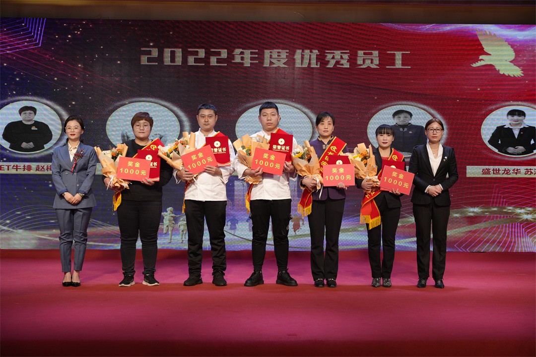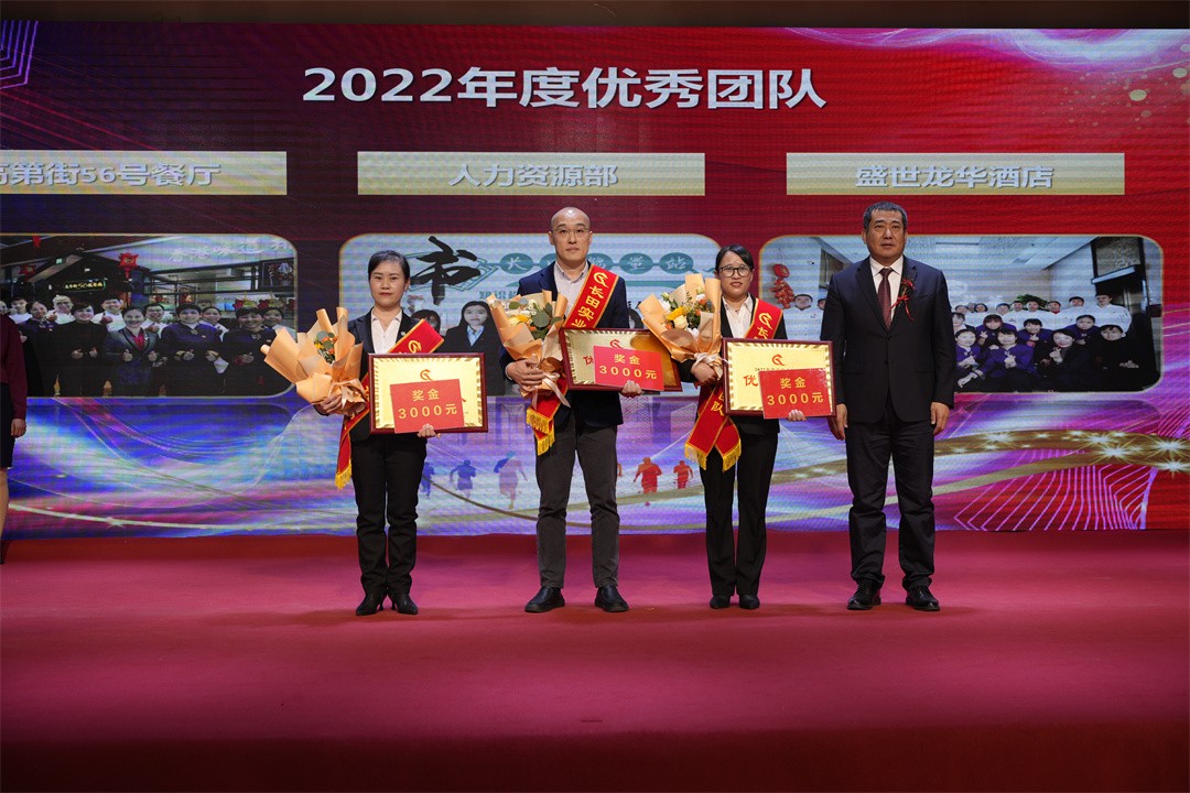 公司授予姚長海、路娟、劉序萍等31人“優(yōu)秀員工”榮譽;授予王建、高君、魯文?!翱挂邇?yōu)秀員工”榮譽;授予張國晶、趙明超“抗疫優(yōu)秀管理者”榮譽;授予孫濤、李鳳、孫秀敏“優(yōu)秀經(jīng)理人”榮譽;授予盛世龍華酒店、高第街56號餐廳、人力資源部“優(yōu)秀團隊”榮譽。此外,由于在疫情防控工作中的優(yōu)異表現(xiàn),授予郭利萍、劉景山、魏峰等68人“抗疫紀(jì)念獎”榮譽。