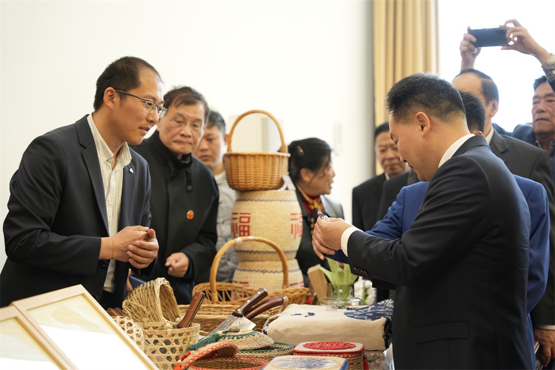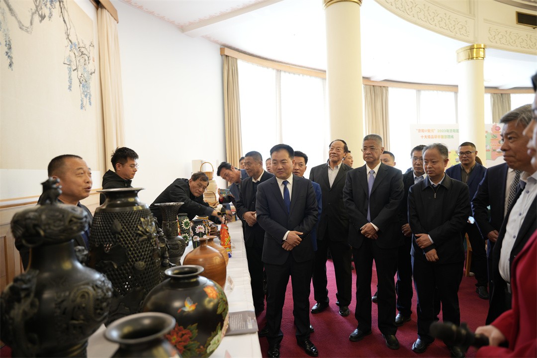 長(zhǎng)田實(shí)踐教育基地經(jīng)理、濟(jì)北手造展示體驗(yàn)中心經(jīng)理、濟(jì)陽地域歷史文化研究促進(jìn)會(huì)秘書長(zhǎng)曹磊與市級(jí)非物質(zhì)文化遺產(chǎn)龍山黑陶制作技藝代表性傳承人、龍格黑陶副經(jīng)理徐慶增為領(lǐng)導(dǎo)講解濟(jì)陽非物質(zhì)文化遺產(chǎn)與地方特色產(chǎn)品。本次活動(dòng)中所展示的濟(jì)陽非物質(zhì)文化遺產(chǎn)與地方特色產(chǎn)品均由山東手造濟(jì)北展示體驗(yàn)中心提供與布展。