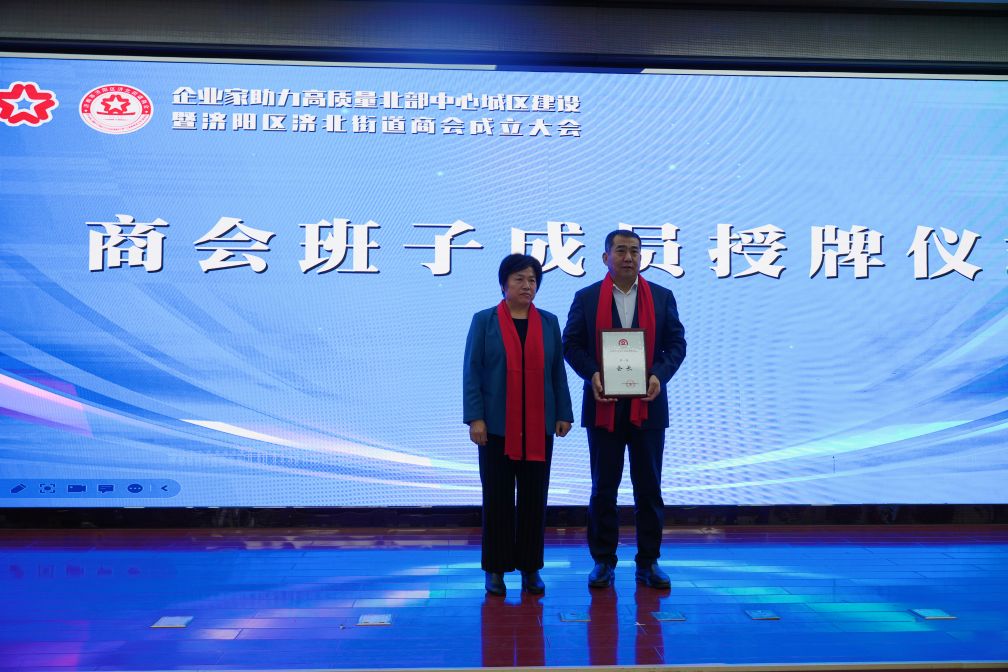 于愛華主席為新當(dāng)選的濟(jì)北街道商會會長授牌