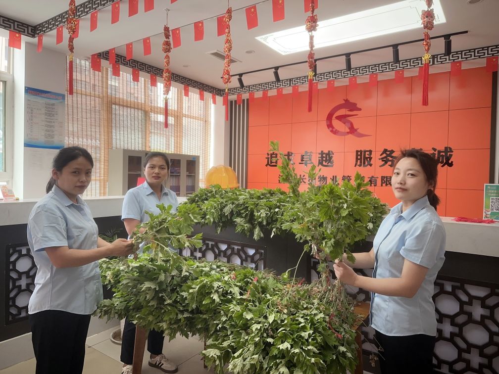 艾草,是端午節(jié)的重要象征,寓意著健康和平安。每逢端午佳節(jié),人們習(xí)慣將艾草插于門楣、懸于堂中,用以驅(qū)蟲、辟邪祈福。長田物業(yè)禧福鳳凰城項目部工作人員將一早精心挑選采購回來的新鮮艾草,扎成捆,免費贈予業(yè)主,讓業(yè)主感受來自長田物業(yè)滿滿的“艾”意。