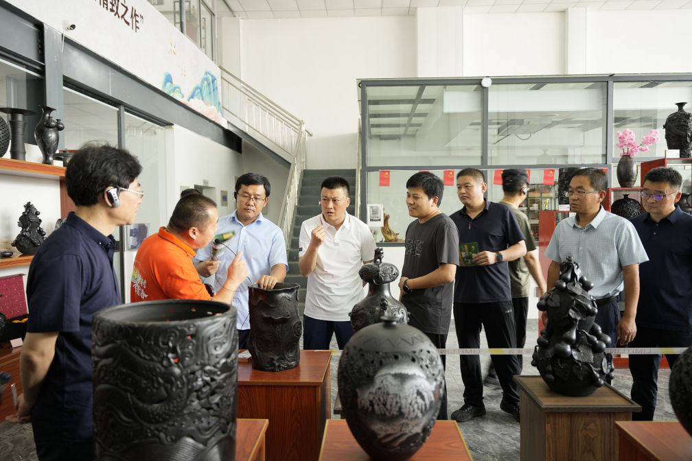 隨后,大家走進(jìn)了龍格黑陶藝術(shù)研究院,了解黑陶的歷史文化,近距離感受黑陶文化的魅力??疾靾F(tuán)一行被精美的黑陶作品深深吸引,對龍格黑陶的制作工藝和傳承價(jià)值表示贊賞。