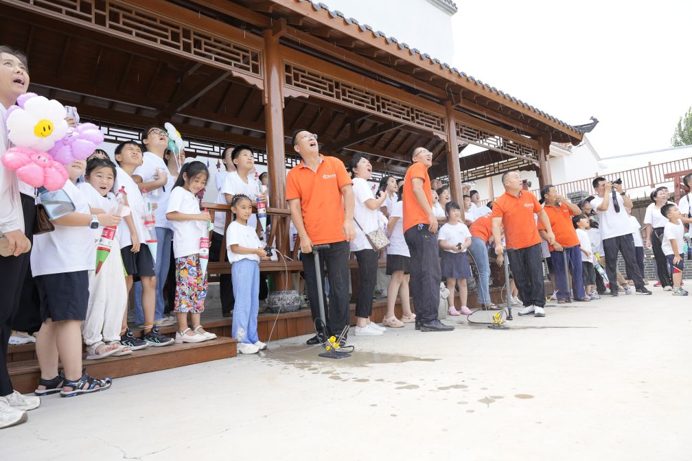隨后,孩子們都化身為“小小航天工程師”,在研學(xué)老師的指導(dǎo)下,孩子們不斷改進(jìn)調(diào)整,伴隨著“嘭”的一聲,“水火箭”一飛沖天,成功發(fā)射。一陣陣贊嘆聲、驚呼聲伴隨著每個水火箭的升空發(fā)射,孩子們與家長們在現(xiàn)場都不由自主地拍手鼓掌,為自己的發(fā)射成功感到自豪。