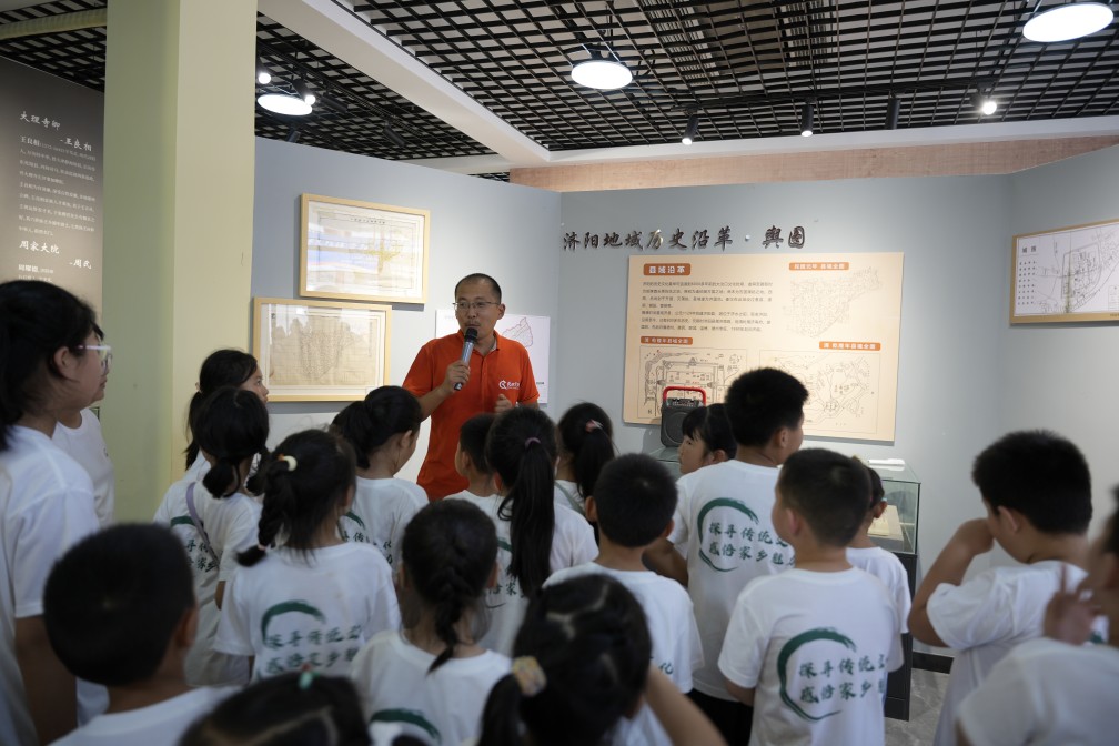與文物對話,駐足歷史痕跡,感受文化的無窮魅力,增強(qiáng)孩子們的文化自信。孩子們在講解員的引領(lǐng)下參觀基地內(nèi)濟(jì)水春秋博物館,館內(nèi)陳列著大量的珍貴古籍文獻(xiàn),涵蓋古代歷法、古代文學(xué)、古代農(nóng)業(yè)等各個門類,各類歷史文獻(xiàn)描繪了濟(jì)陽厚重的歷史進(jìn)程,孩子們在參觀中學(xué)習(xí)家鄉(xiāng)的歷史文化,了解濟(jì)陽故事,增強(qiáng)對家鄉(xiāng)的了解,提升文化自信。