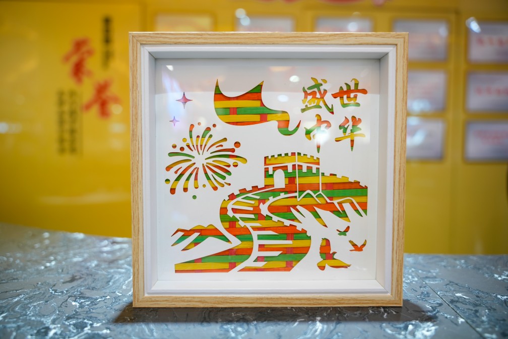一穿一引,一挑一壓,這不僅是竹編的技巧,更是文化的傳遞。工作人員給孩子們分發(fā)相框、竹片、膠帶等制作用具,為孩子們講解非遺竹編畫的制作步驟,并親自示范帶領(lǐng)孩子們逐步制作。大家認(rèn)真地壓、挑、穿、引,每一個動作都顯得那么專注而投入。陽光透過玻璃,灑落在孩子們稚嫩而專注的面龐上,為這場景增添了幾分溫馨與美好,宛如一幅動人的生活畫卷,記錄著他們對傳統(tǒng)文化的熱愛與傳承。