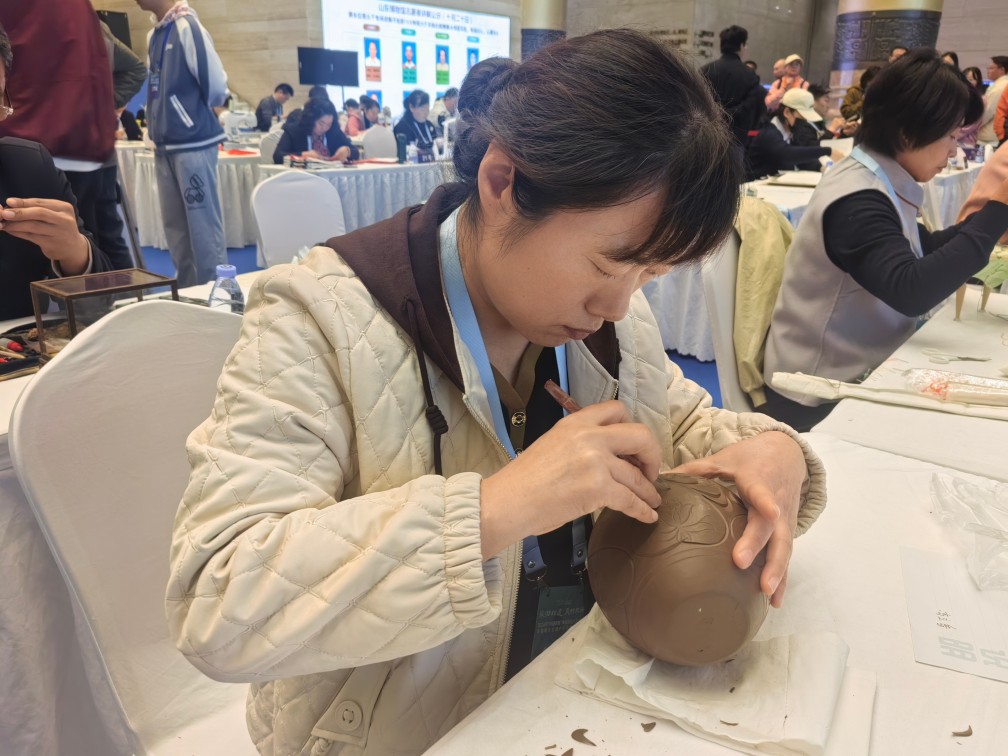 2024年10月19日—20日,由山東省文化和旅游廳指導(dǎo),濟(jì)南市文化和旅游局、濟(jì)南市人力資源和社會(huì)保障局、共青團(tuán)濟(jì)南市委主辦,山東博物館、新黃河 ? 濟(jì)南時(shí)報(bào)承辦,第八屆中國非物質(zhì)文化遺產(chǎn)博覽會(huì)2024年“技耀泉城”海右技能人才大賽——非物質(zhì)文化遺產(chǎn)手工技能大賽在山東博物館成功舉辦。20日,龍格黑陶工作人員高立香、王建參與賽事。