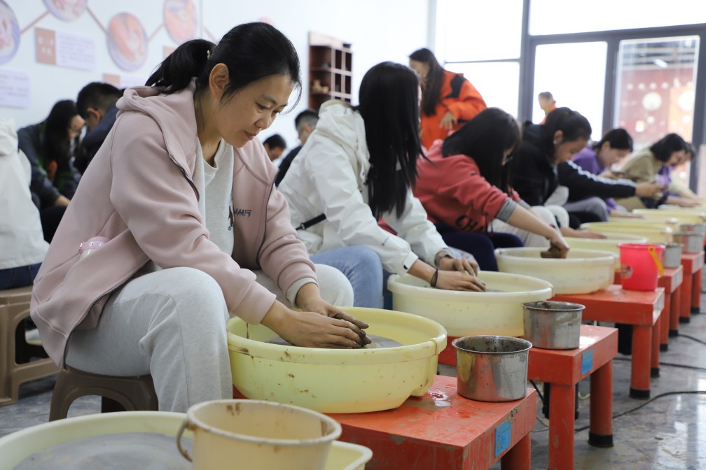 隨后,在省級非物質(zhì)文化遺產(chǎn)項目濟(jì)陽黑陶制作技藝代表性傳承人徐慶增老師的指導(dǎo)下,學(xué)員們親自體驗了黑陶制作過程,他們學(xué)習(xí)了基本技藝——拉坯,親手制作出屬于自己的黑陶作品。通過這次體驗,學(xué)員們不僅對非遺文化有了更深刻的認(rèn)識,也更加珍惜和尊重傳統(tǒng)手工藝。
