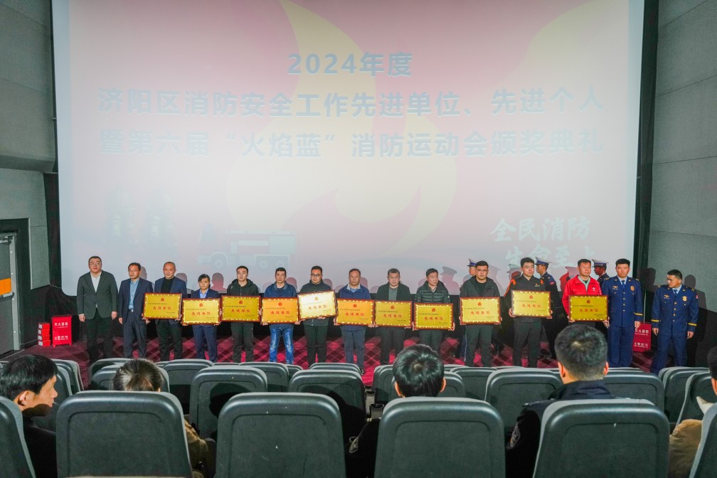 11月16日上午,2024年度濟陽區(qū)消防安全先進單位、先進個人暨第六屆“火焰藍”消防運動會頒獎儀式在華百廣場四樓橫店電影城隆重舉行。濟陽區(qū)消防救援大隊副大隊長潘東出席活動。長田實業(yè)常務副總經理朱寶剛,副總經理、華百廣場總經理成峻志受邀作為頒獎嘉賓參加頒獎儀式。