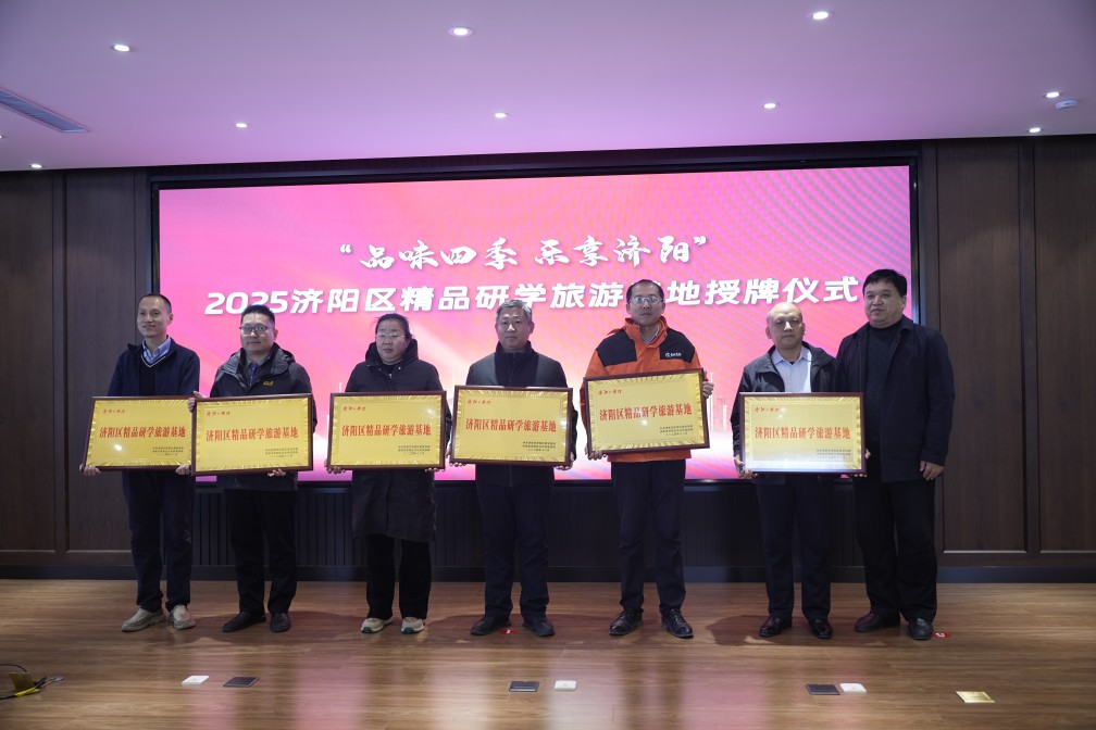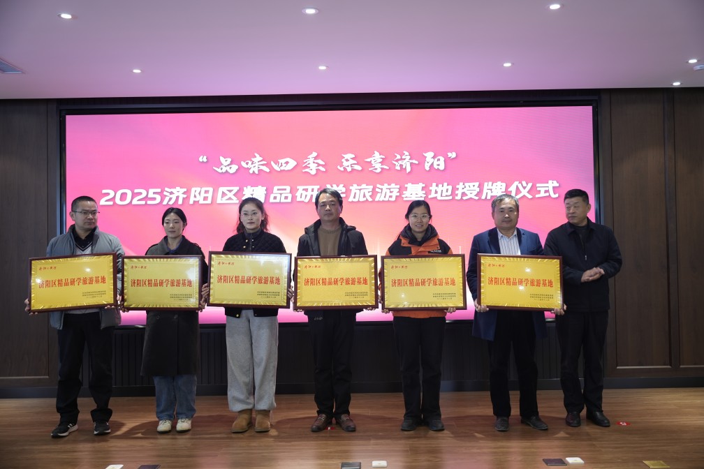 區(qū)教育和體育局黨組書記、局長韓清林,區(qū)融媒體中心主任孟強為2025濟陽區(qū)精品研學(xué)旅游基地授牌。長田實踐教育基地、山東手造濟北展示體驗中心被授予濟陽區(qū)精品研學(xué)旅游基地。