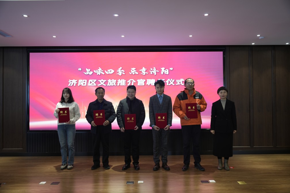 區(qū)文化和旅游局黨組書記、局長王春蘭上臺為濟陽區(qū)文旅推介官頒發(fā)聘書。長田實踐教育基地經(jīng)理曹磊上臺領(lǐng)獎。作為優(yōu)秀的鄉(xiāng)村“文化和旅游工作者”,他先后獲得“濟陽區(qū)十大杰出青年”“黨史史志文獻特約編輯”“濟陽區(qū)融媒新媒體合伙人”等榮譽稱號。