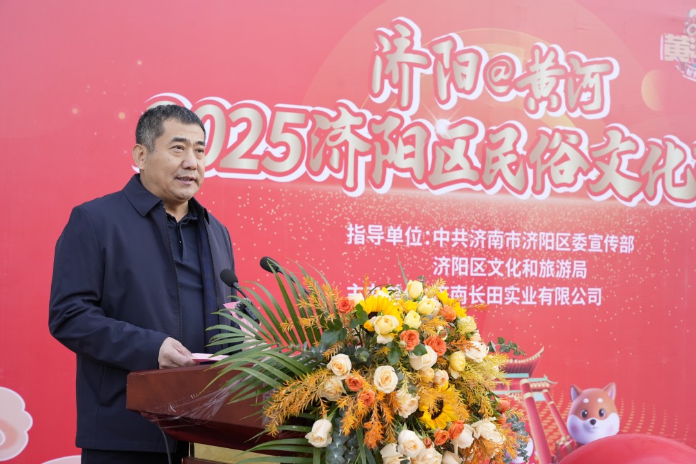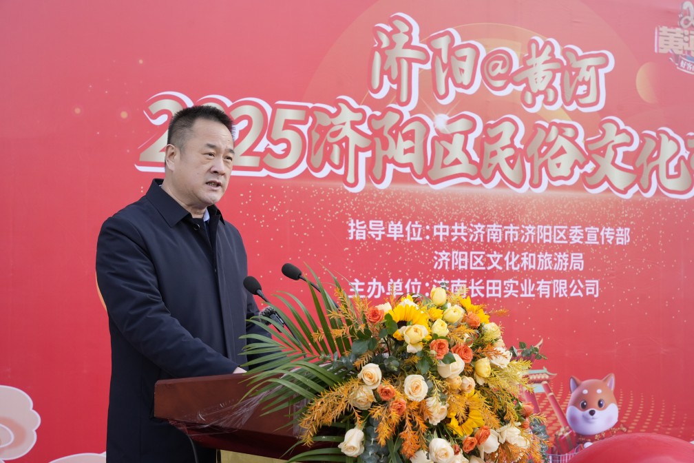 張總發(fā)表講話,他講到,民俗文化是一個(gè)民族的精神脊梁,是我們共同的根與魂。在濟(jì)陽(yáng)這片古老而又充滿魅力的土地上,孕育了豐富多彩的民俗文化。巧奪天工的濟(jì)陽(yáng)黑陶、農(nóng)民畫(huà)、木作等傳統(tǒng)手工技藝,香氣撲鼻的垛石驢肉、小磨香油,喜慶吉祥的糖畫(huà)等,都彰顯著濟(jì)陽(yáng)人民的智慧與創(chuàng)造力,承載著濟(jì)陽(yáng)深厚的歷史底蘊(yùn)與獨(dú)特的文化魅力。他希望,能夠通過(guò)本次民俗文化市集活動(dòng),為市民搭建一個(gè)深入了解、體驗(yàn)濟(jì)陽(yáng)民俗文化的平臺(tái),讓更多人了解濟(jì)陽(yáng)的文化底蘊(yùn),在這場(chǎng)接地氣的市集活動(dòng)中感受別樣的年味氣氛,體驗(yàn)到文化的滋養(yǎng)。