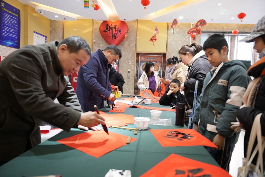 此外,在活動(dòng)現(xiàn)場(chǎng),濟(jì)陽(yáng)區(qū)總工會(huì)主持“送萬(wàn)福 進(jìn)萬(wàn)家”書(shū)法公益活動(dòng),邀請(qǐng)書(shū)法家現(xiàn)場(chǎng)寫(xiě)春聯(lián)、贈(zèng)春聯(lián)、送“福”字,用筆墨丹青為廣大市民送上新春的美好祝福。