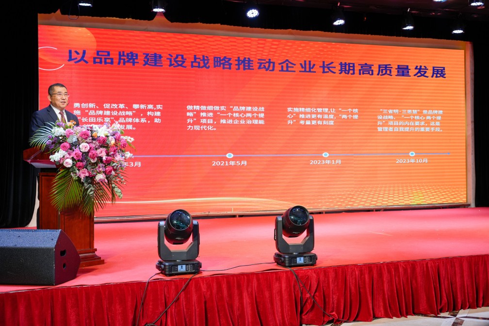 企業(yè)文化是企業(yè)持續(xù)向上發(fā)展的內(nèi)驅(qū)力,也是企業(yè)發(fā)展最大的軟實(shí)力。公司成立近二十年,企業(yè)文化持續(xù)迭代,構(gòu)建了以企業(yè)愿景、企業(yè)使命、企業(yè)精神等為核心的完善的企業(yè)文化體系,奠定了企業(yè)文化建設(shè)的根基;以司歌、司徽、《長(zhǎng)田人》期刊、長(zhǎng)田講堂等為載體,推進(jìn)企業(yè)文化落地生根。副總經(jīng)理成峻志帶領(lǐng)大家宣讀企業(yè)文化,以文化人,培根鑄魂,展示長(zhǎng)田士氣。