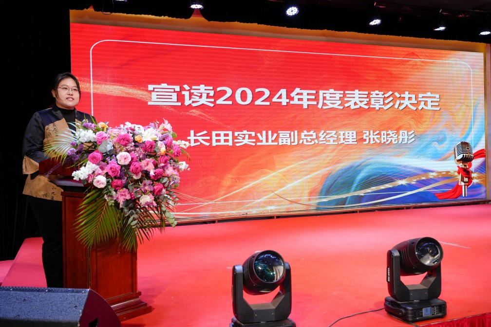 2024年,是長(zhǎng)田實(shí)業(yè)聚焦深耕、砥礪前行的一年,在這一年中,全體長(zhǎng)田人上下同欲、開拓創(chuàng)新,聚力前行中,涌現(xiàn)出了這樣一批有為的追夢(mèng)人,他們用平凡的點(diǎn)滴和堅(jiān)持,詮釋著匠心精神;用不懈的努力和奮斗,書寫了輝煌篇章。他們堅(jiān)定勇毅、銳意進(jìn)??;追求卓越,勇于擔(dān)當(dāng);在平凡中非凡,在盡頭處超越!他們?cè)诟冻?,也在收獲。副總經(jīng)理張曉彤宣讀2024年度表彰決定。今年,公司積極完善榮譽(yù)制度體系,增設(shè)了心聲傳遞模范、拾金不昧模范、見義勇為模范、長(zhǎng)田衛(wèi)士以及高質(zhì)量發(fā)展獎(jiǎng)等多項(xiàng)榮譽(yù),進(jìn)一步激發(fā)員工潛能,營(yíng)造積極向上的工作氛圍,助力企業(yè)持續(xù)穩(wěn)健發(fā)展。