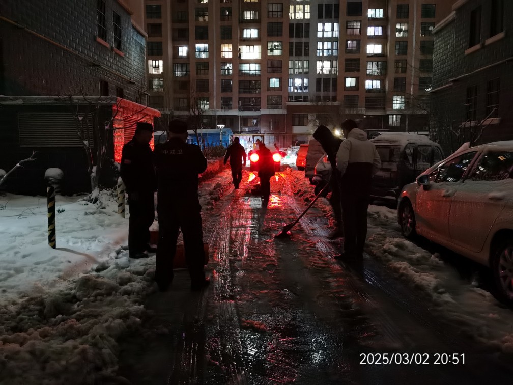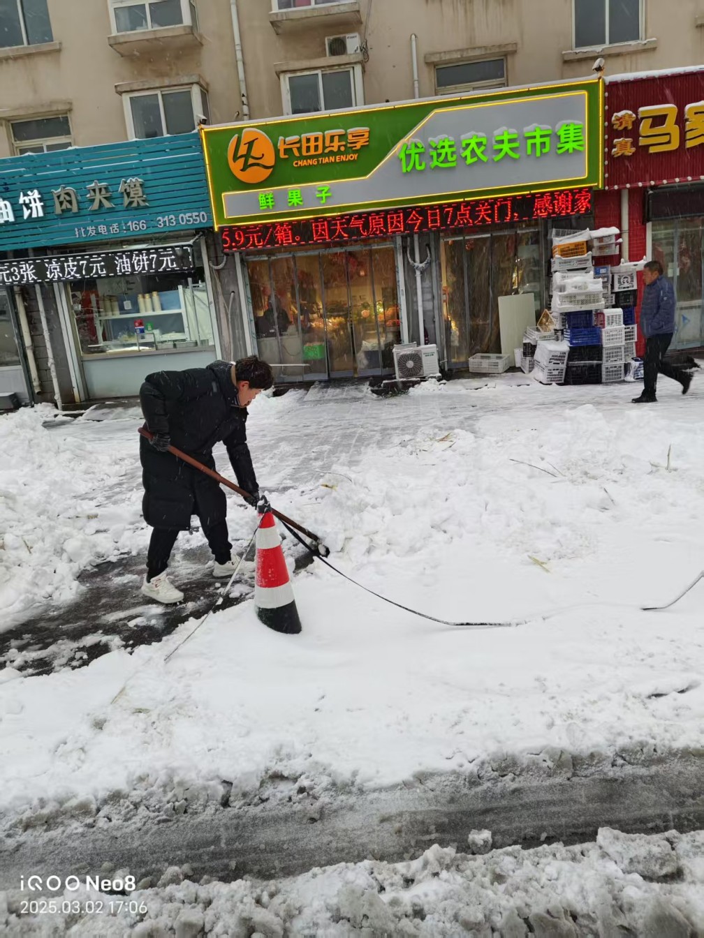 飛雪增寒意,清雪暖人心。3月2日,一場突如其來的春雪為大地披上了素白銀裝。鵝毛般的雪花紛紛揚(yáng)揚(yáng)下了一整天,道路上的積雪深達(dá)十余厘米,道路濕滑,臺階結(jié)冰,給出行埋下了安全隱患。面對極端天氣考驗,長田實業(yè)各業(yè)態(tài)以“雪”為令,迅速響應(yīng),投入到這場與冰雪的“戰(zhàn)斗”中。大家不畏嚴(yán)寒,齊心協(xié)力用實際行動展現(xiàn)長田人的強(qiáng)大凝聚力和高效行動力。
