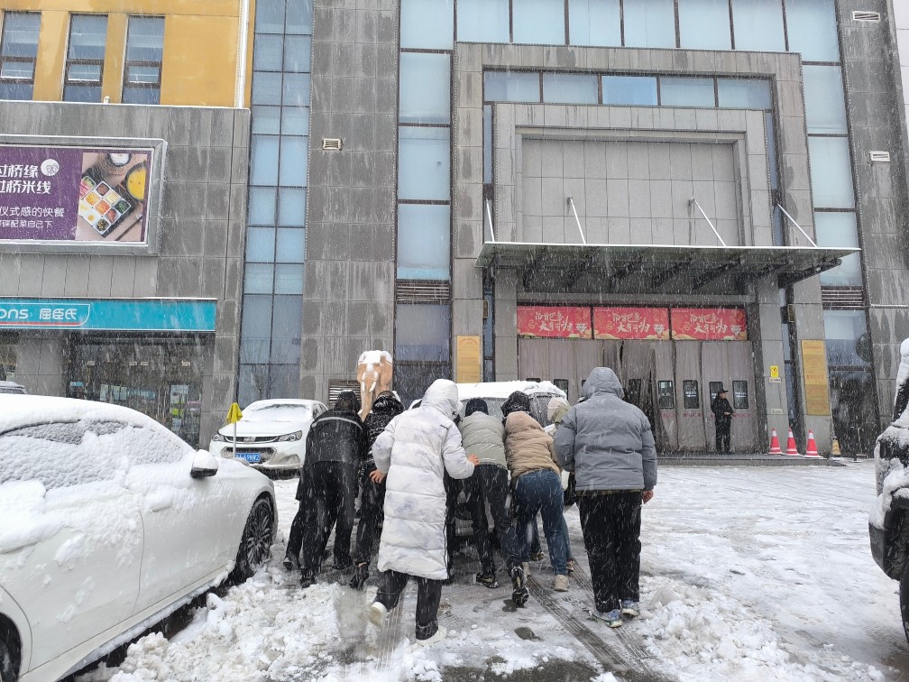 華百電影文化廣場外,大雪依舊飄飄灑灑、尚未停歇的時候,華百商管和物業(yè)人員就已經(jīng)踏上了清掃積雪的征程。在掃雪過程中,偶遇因積雪厚重而無法前行的車輛,他們毫不猶豫地放下手中的工具,匯聚成一股強(qiáng)大的合力,齊心協(xié)力推車前行,一邊精準(zhǔn)指揮車輛,一邊奮力推動,最終成功助力車輛脫困。為防止影響車牌的錄入,物業(yè)人不懼寒冷,徒手將一個個車牌上的積雪清除,這一暖心之舉,不僅贏得了車主由衷的感激,更讓市民深切感受到了長田人的溫暖與力量。