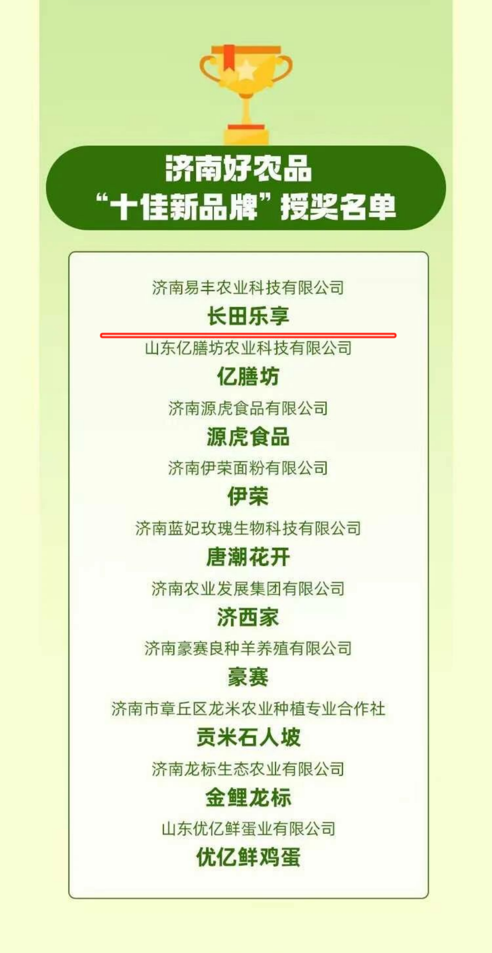 3月31日,首屆“濟南好農(nóng)品”品牌評選結(jié)果正式揭曉,在濟南市農(nóng)業(yè)農(nóng)村局指導(dǎo)、市農(nóng)業(yè)產(chǎn)業(yè)協(xié)會主辦的這項權(quán)威評選活動中,長田樂享谷物超鮮蛋從眾多參評企業(yè)中脫穎而出,成功入選“十佳新品牌”。這標(biāo)志著政府及市民對長田樂享品質(zhì)的高度認可。