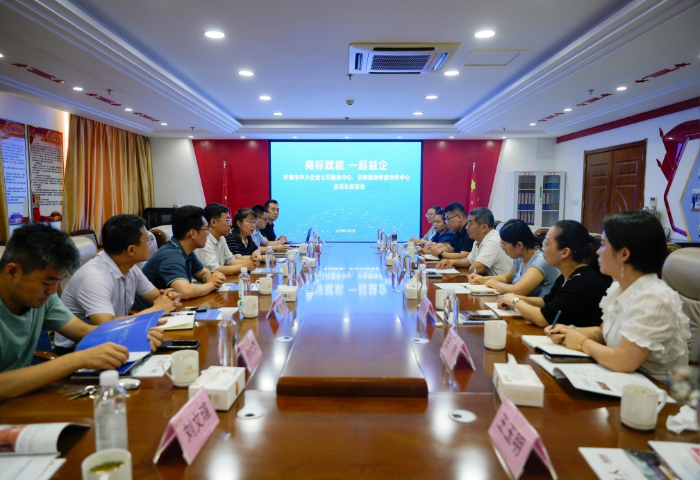 7月2日上午,濟南市中小企業(yè)公共服務中心、濟南商標審查協(xié)作中心走進長田實業(yè)舉辦“商標賦能 一起益企”公益咨詢服務活動,旨在提供專業(yè)的商標知識指導與精準的咨詢服務,助力企業(yè)提升商標品牌意識,增強商標運用與保護能力。山東省市場監(jiān)督管理局知識產(chǎn)權促進處二級調(diào)研員王華偉、濟南市中小企業(yè)公共服務中心專職副書記陳炳亮、濟南商標審查協(xié)作中心副主任宮衛(wèi)清等領導出席活動。長田實業(yè)黨支部書記、董事長張勇參加活動。同時,張總作為濟北街道商會會長還組織了濟北街道商會的會員單位前來交流學習。